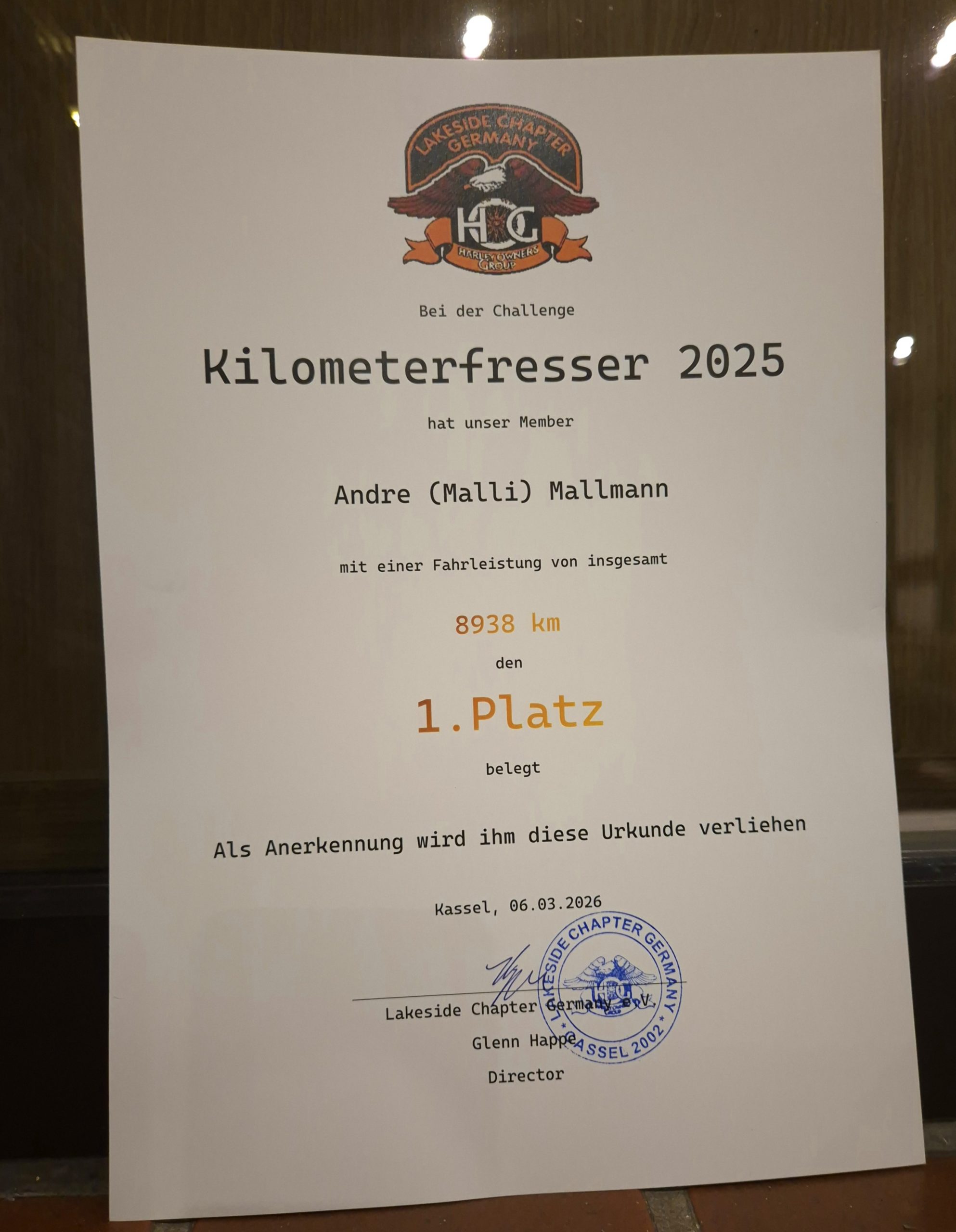 Am heutigen Freitag den 06.03.26 fand erstmalig die Jahreshauptversammlung des Lakeside Chapter Germany e.V. statt. Hierbei wurden mehrere Ehrungen, unter anderem für besondere Verdienste vorgenommen, sowie einzelne Member für langjährige Mitgliedschaften geehrt.